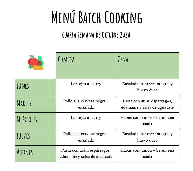 Últimamente me gusta que lleguen los Viernes para poder compartir con vosotros un nuevo menú con sus recetas. Esta semana, os traigo un guiso de legumbres diferente: las lentejas al curry. Una combinación que no deja indiferente a nadie y si os gusta el curry os encantará. También incluye como casi siempre una receta de ensalada, para tener una receta menos en nuestra sesión de batch cooking.