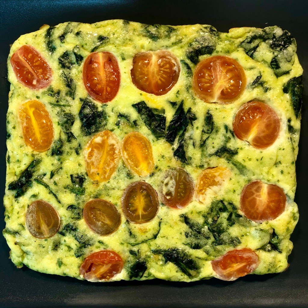 Pastel de huevo con espinacas y tomates: