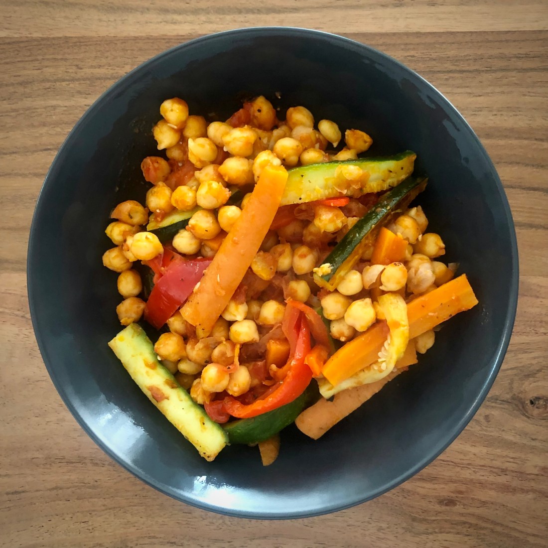 Una receta vegana, fácil y rápida. Ideal para aprovechar verduras que se vayan a pasar, y tirando también de dos básicos de despensa: legumbre de bote y tomate frito.