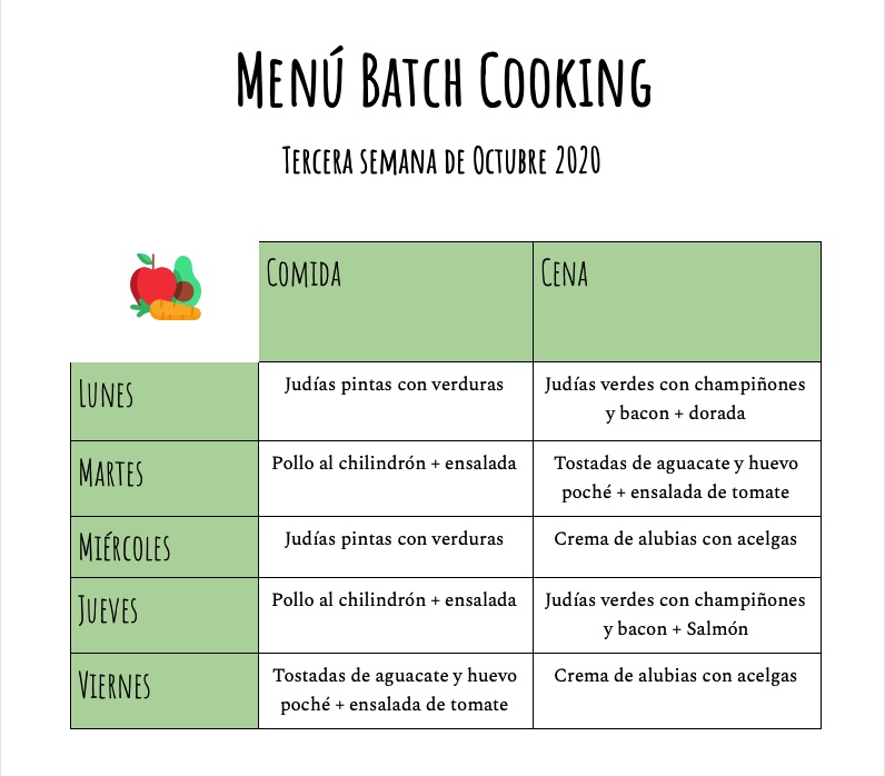 Menú del 28 de Septiembre al 2 de Octubre de 2020