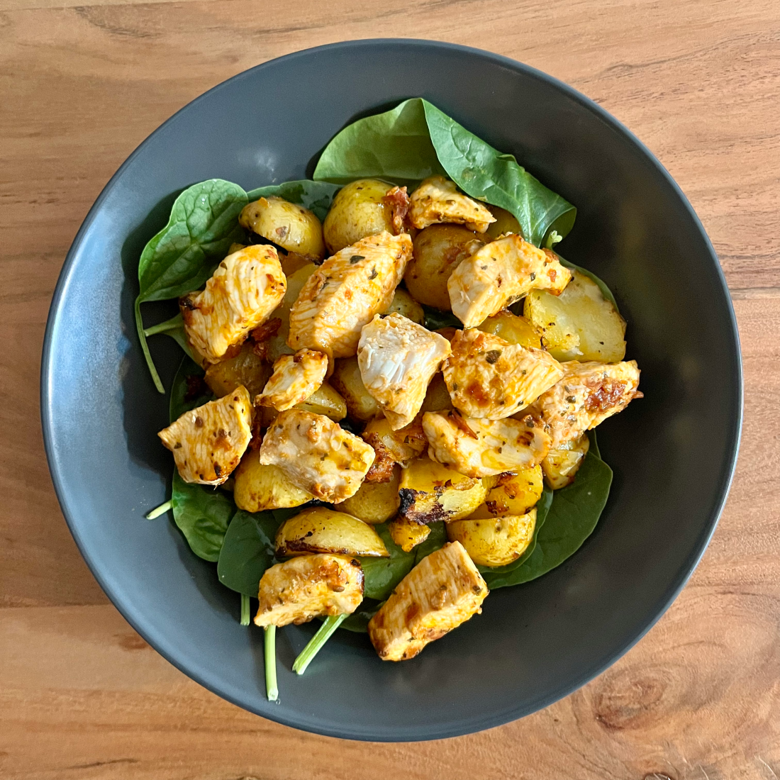 🍗 Ensalada de pollo y patata con pesto rojo 🥔