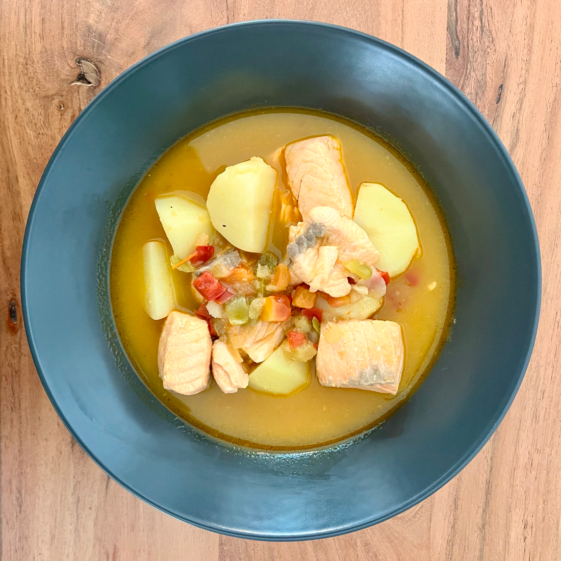 Ya parece que ha llegado el buen tiempo, pero en esta casa se come todo el año de cuchara. Aquí os dejo este delicioso y sencillo guiso de salmón.